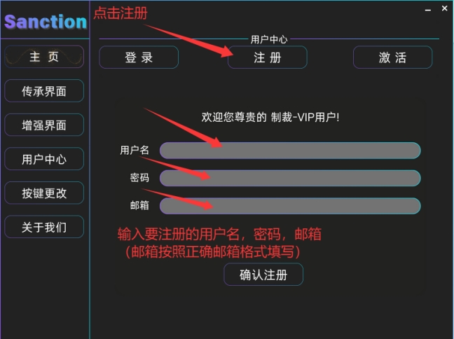 右键以管理员身份打开软件点击 注册账号 注册的用户名密码和邮箱(邮箱一定要按照正确格式填写)
