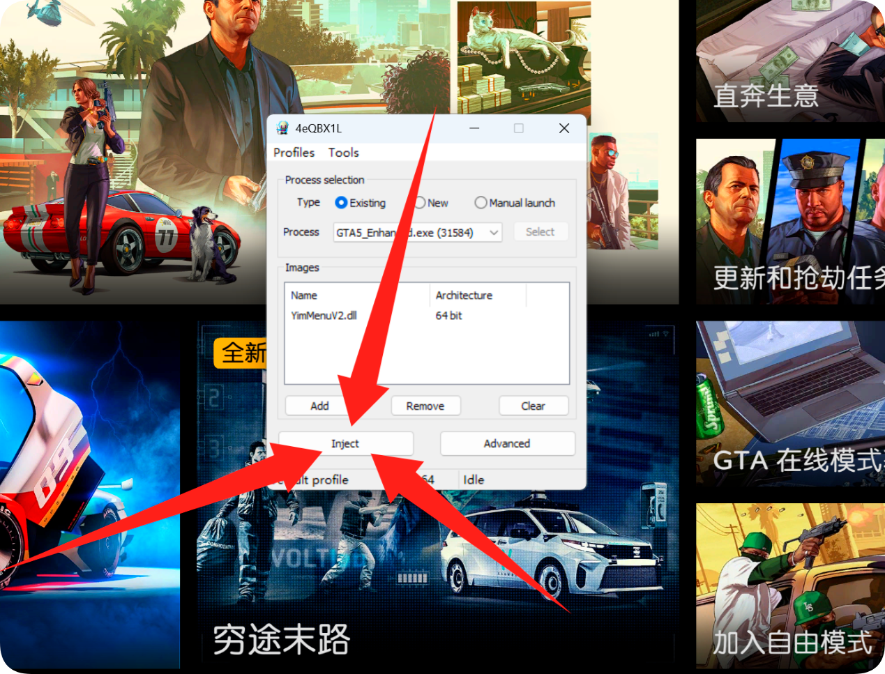 点击Inject注入