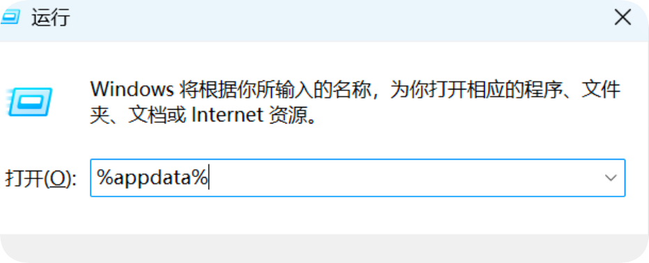 Win+R,输入%appdata%点击确定打开C:\Users(用户)\电脑用户名\AppData\Roaming