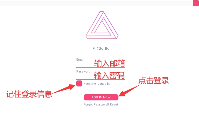 输入邮箱密码后点击 LOG IN NOW 登陆