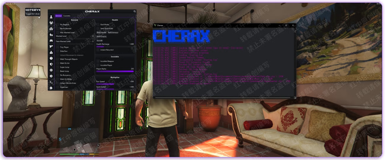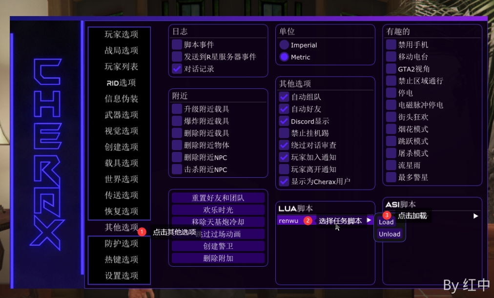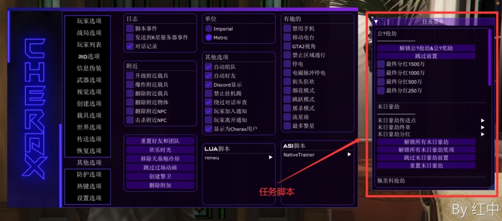 打开樱桃的 脚本插件选项 - 勾选 Menyoo
