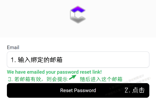 出现绿色提示:We have emailed your password reset link! 后,进入你的邮箱点击里面的链接