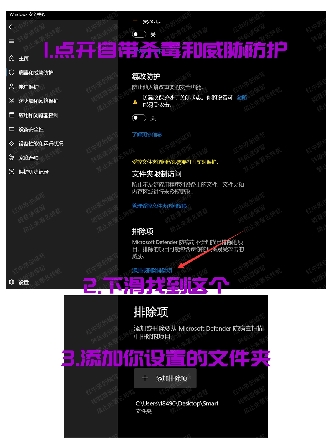 病毒和威胁防护 →‘病毒和威胁防护’设置