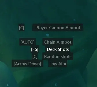 C-> 在炮锁玩家和随机锁点自瞄之间切换 (使用大炮时)向下箭头-> 激活底仓锁F5-> 锁甲板F4-> 兔子跳