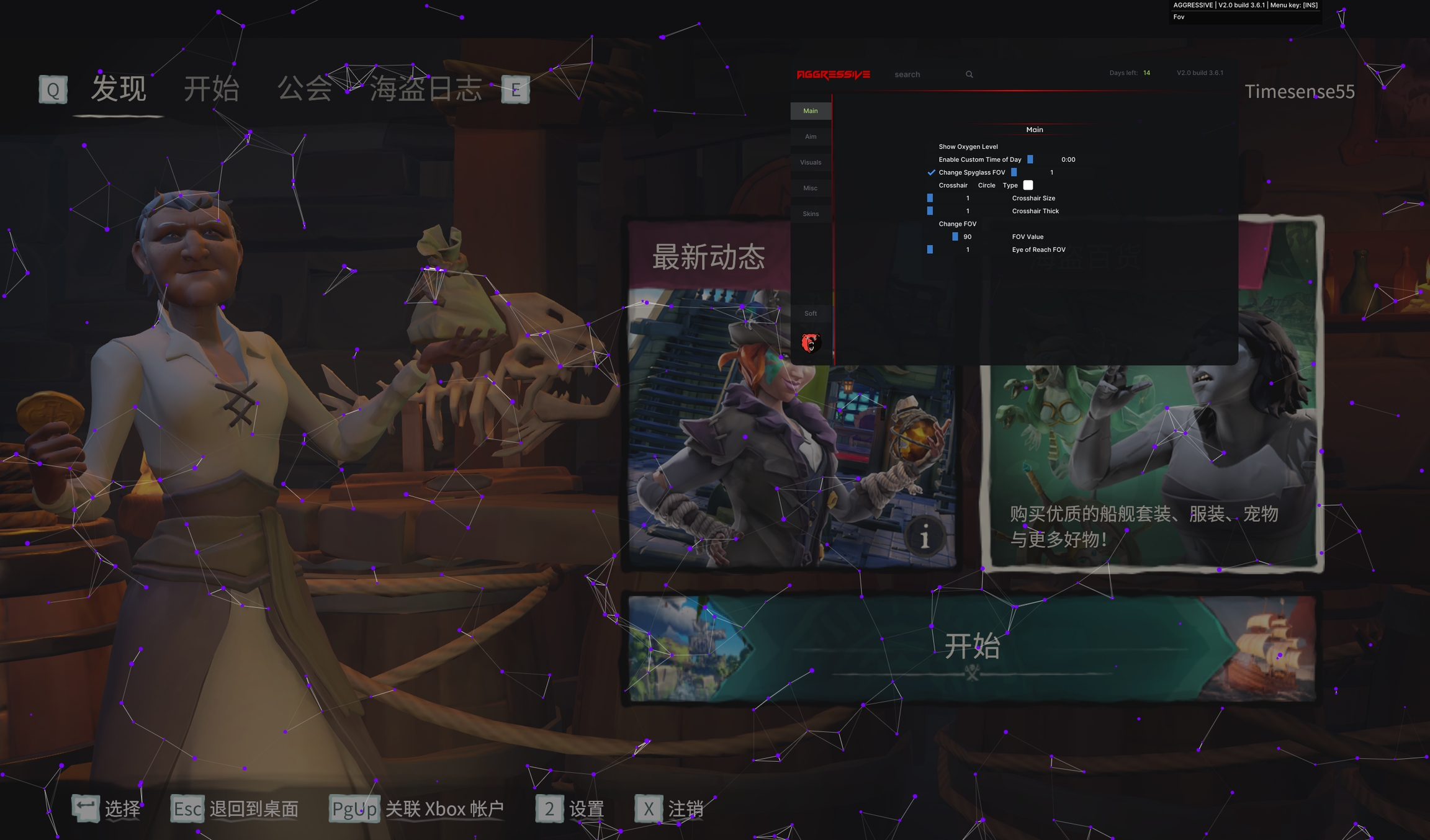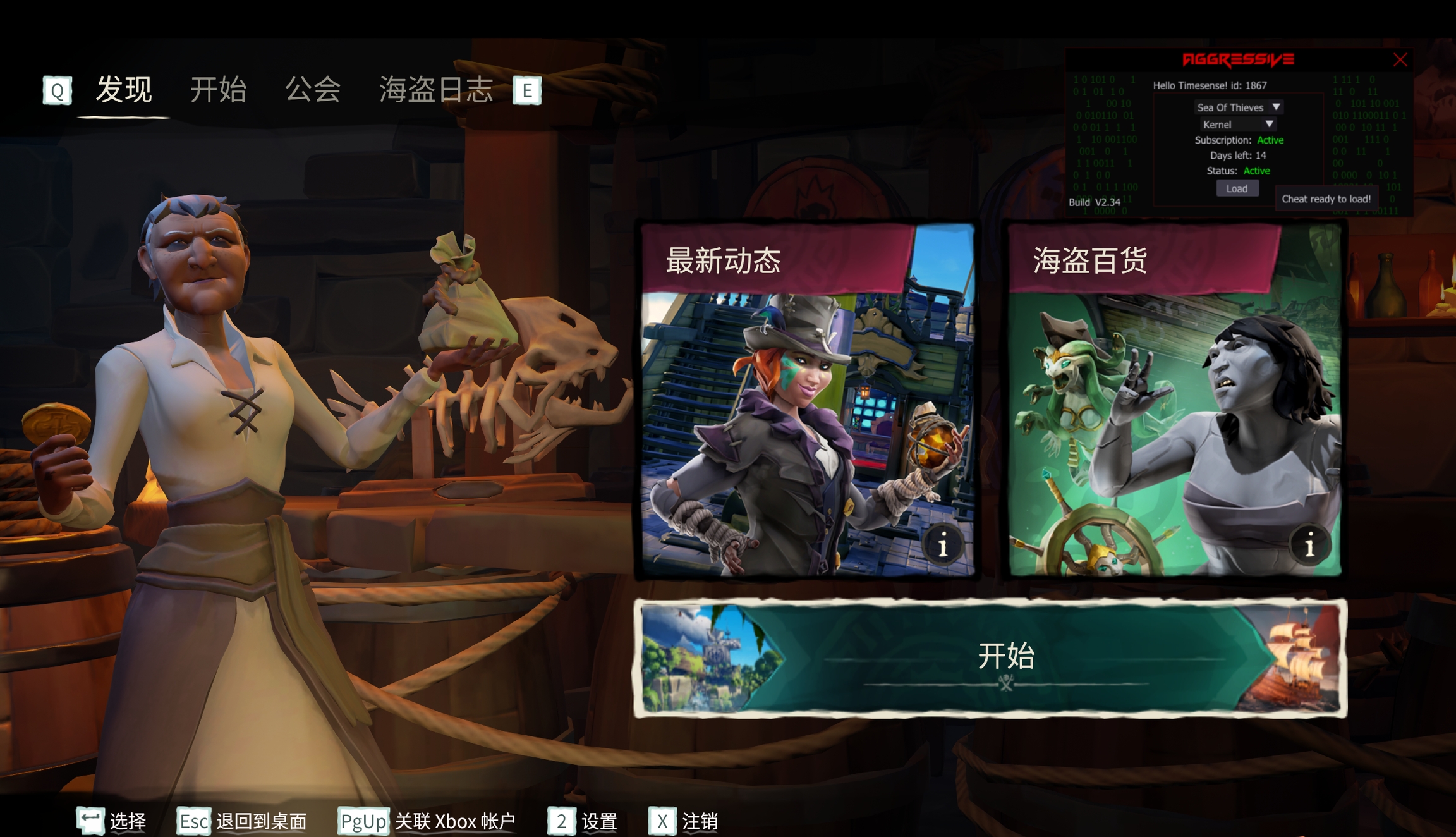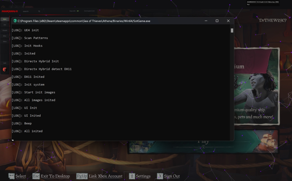 打开eos bypass并且立刻启动盗贼之海,重新回到上一次战局,回到战局人物醒来后注入AGG即可