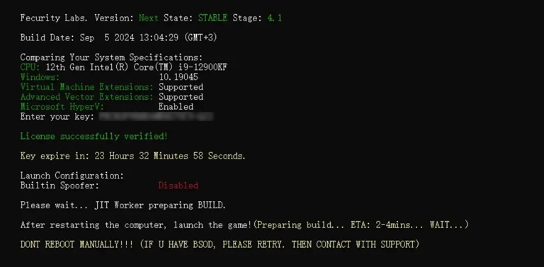 重启电脑后,你将会看到提示:Please wait 20 seconds after booting up` `,然后等待20\~30秒,然后进入游戏后看到左上角弹出小窗口,会通知你已经注入成功!
