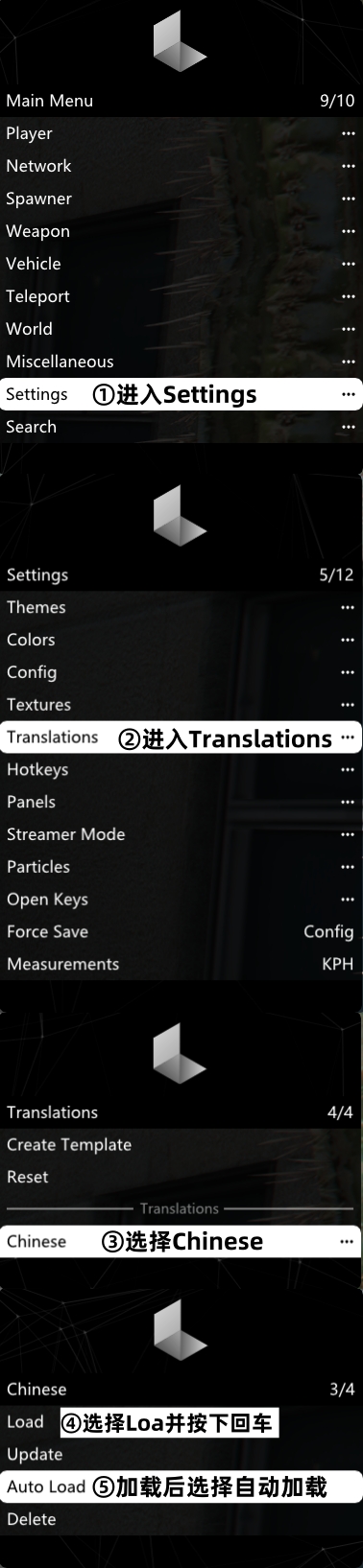 Settings→Translations→Chinese→Load