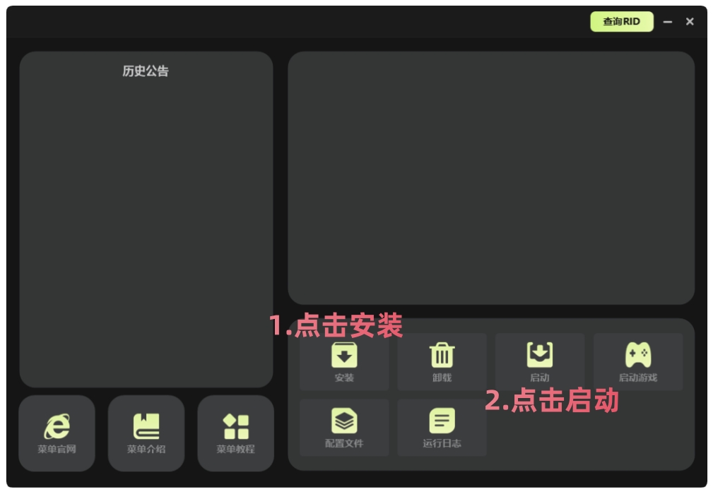 如果你使用完菜单,想玩其他游戏,必须先重启电脑再玩!否则后果自负!