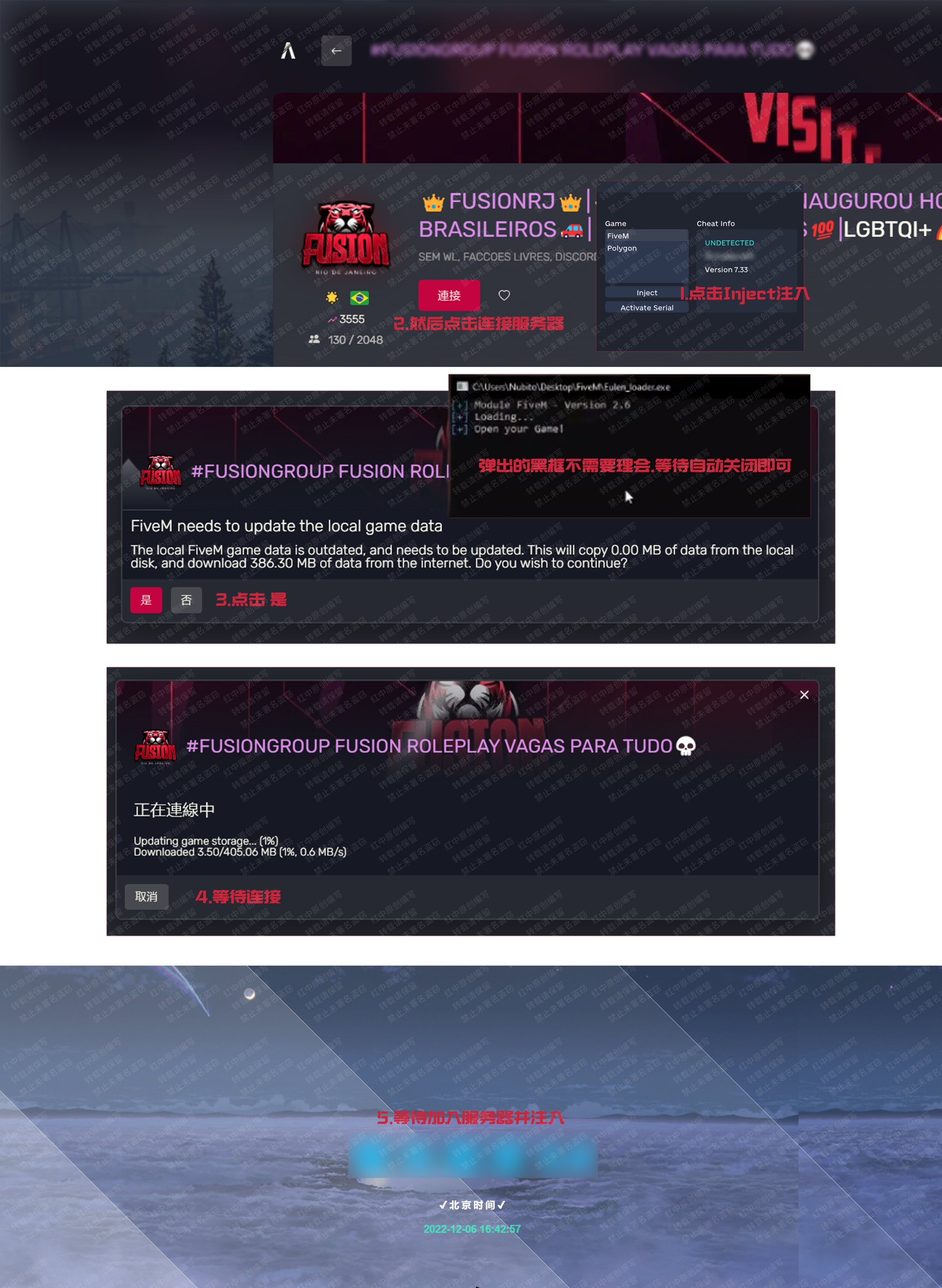 期间等待加入服务器与注入即可,注入成功会加入服务器并自动呼出菜单