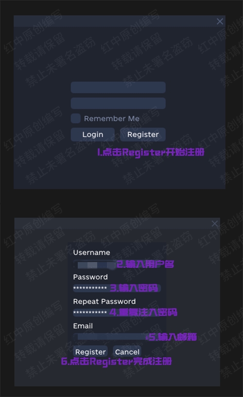 - 注册任何菜单的账号密码与游戏内的完全无关,选适合你的独一无二的好记的,不建议账号密码都输入QQ号等很容易被盗的信息