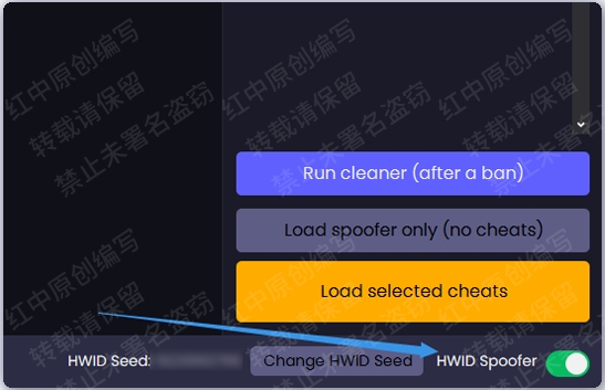 HWID Spoofer旁边的绿色按钮(绿色代表开启)如果需要更换机器码,则点击