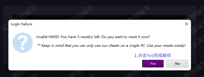 此提示是你已经更换新设备/电脑,如果需要解绑,则点击Yes,如不需要则点击No