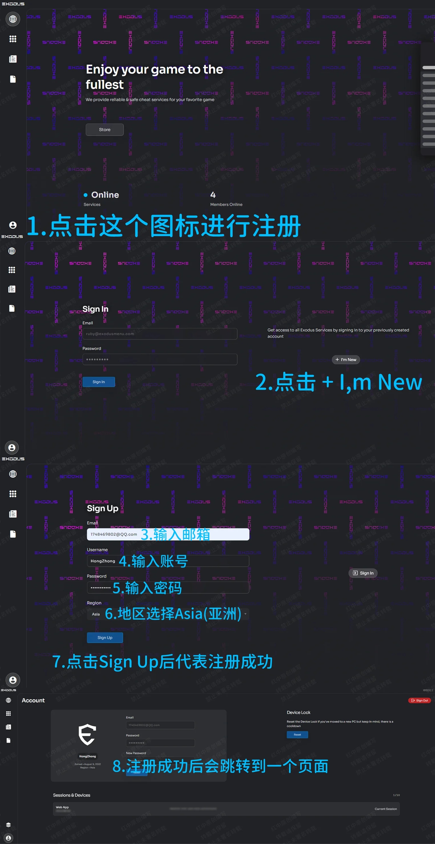 - 注册任何菜单的账号密码与游戏内的完全无关,选适合你的独一无二的好记的,不建议账号密码都输入QQ号等很容易被盗的信息