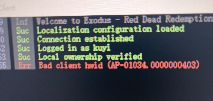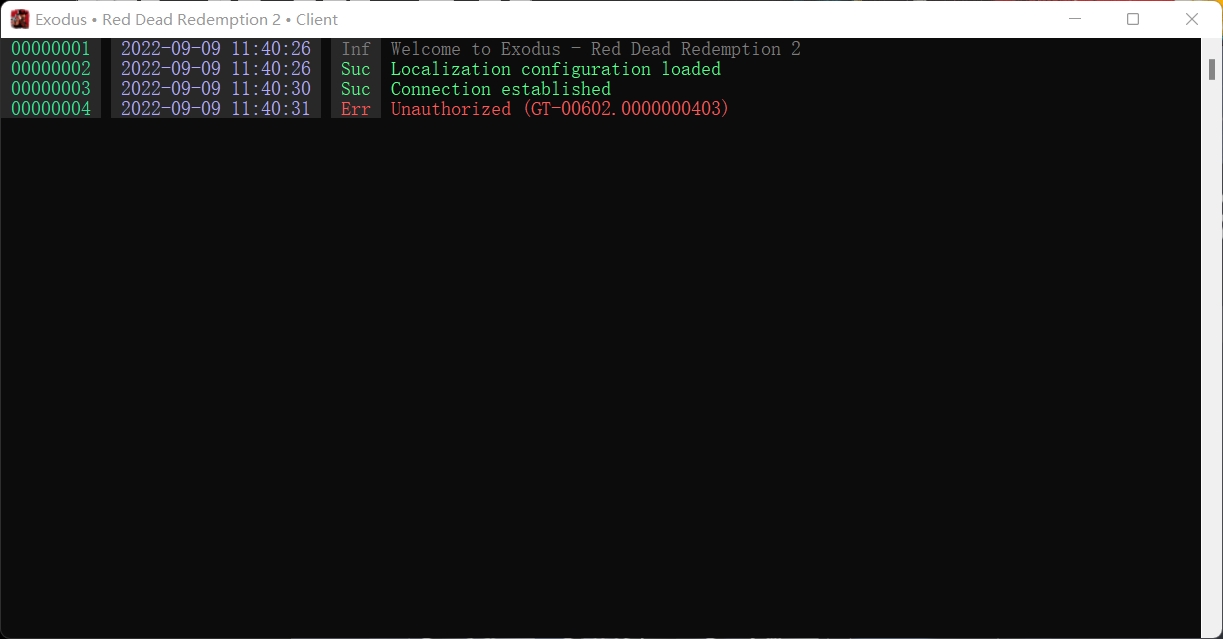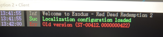 Inf Welcome to Exodus - Red Dead Redemption 2Suc Loca1ization configuration 1oadedErr Unauthorized (GT-00595.0000000403)