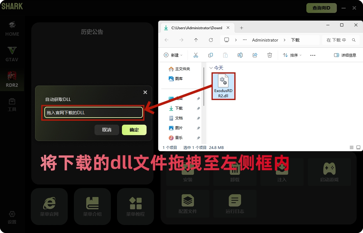 Xenos64.exe) 并将下载的Exodus DLL拖到到其中进入游戏