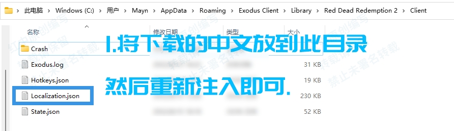 去往菜单根目录%AppData%\Roaming\Exodus Client\Library\Red Dead Redemption 2\Client