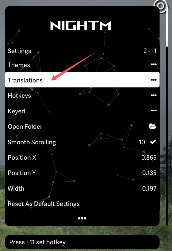 进入 Setting - Translations - Chinese-simplified(简体中文)/ Chinese-traditional(繁体中文) 选择Chinese按回车,即可设置