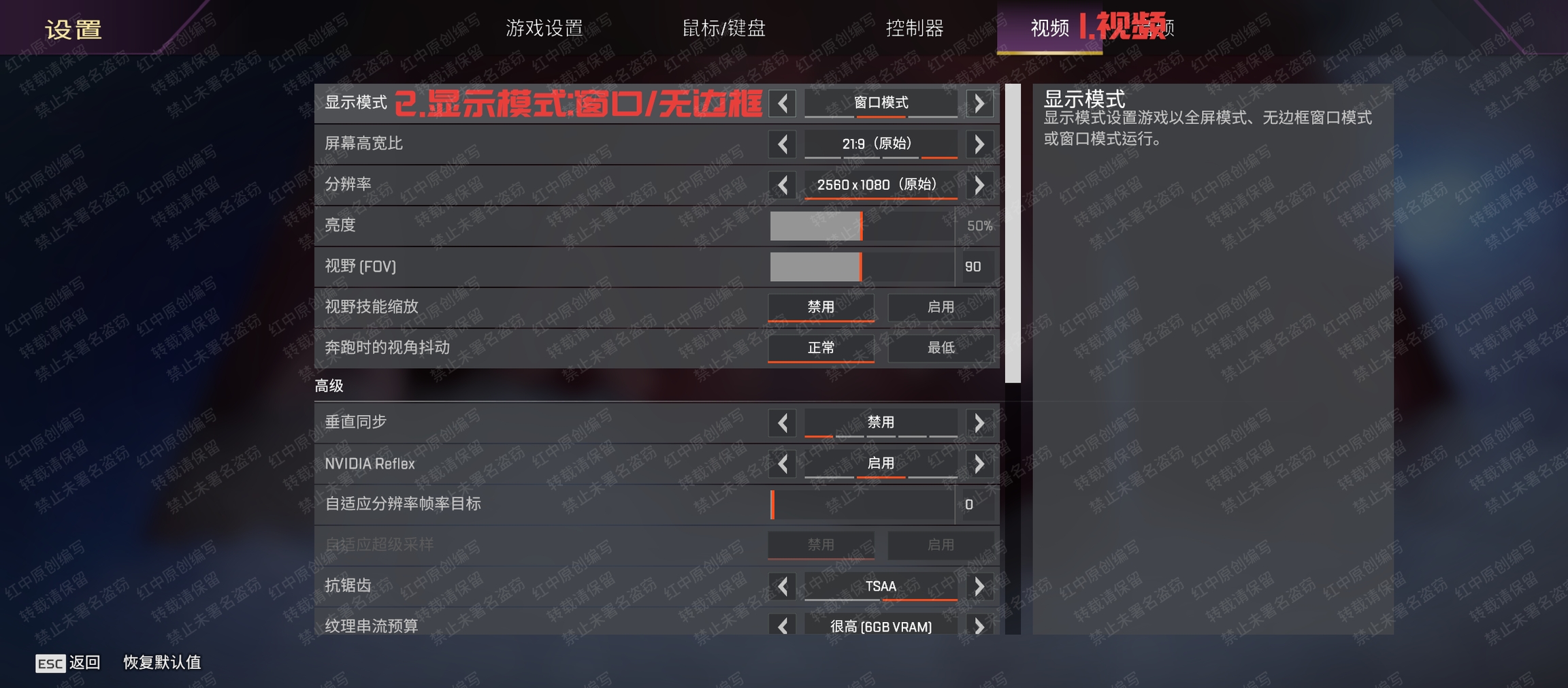 图形图形-视频屏幕类型:窗口化/无边框图形-视频失焦时暂停游戏:关闭图形-下拉至-高级图形 -高级设置:解除锁定图形-下拉至高级图形 -图形API:DirectX12\\`完成后保存并重启游戏\\`确保未安装画质模组,诸如ENBseries等确保未安装其他线下MOD确保无线下修改器