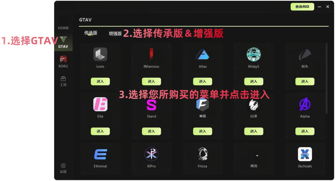 开启GTAV游戏,在游戏进程出现的一瞬间 点击注入