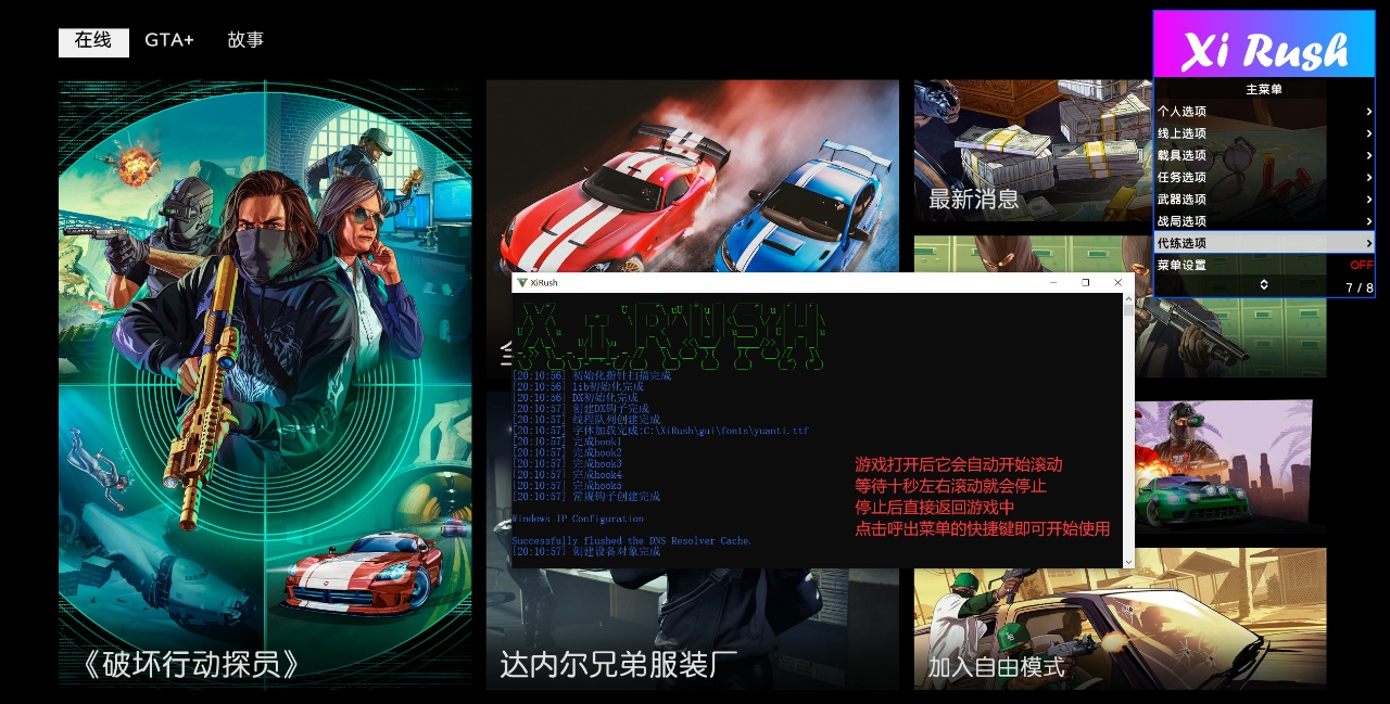 进线上快慢主要取决于战局主机,GTA5是一个P2P游戏,战局运行在随机玩家的本地,和房主有关。虽然进线上的速度取决于房主,但是XiRush可以强行抢夺房主,房主变成自己后,就可以实现秒落地,在你进入线上模式加载的时候,打开XiRush的玩家列表,看到列表里面有人以后点击线上选项的<抢夺脚本主机即可>如果被假踢了仍然选择进入多人公开战局也会卡云一段时间