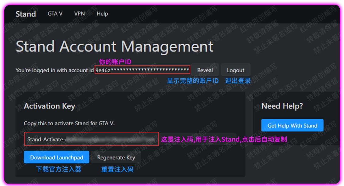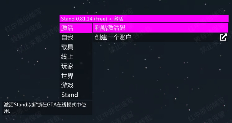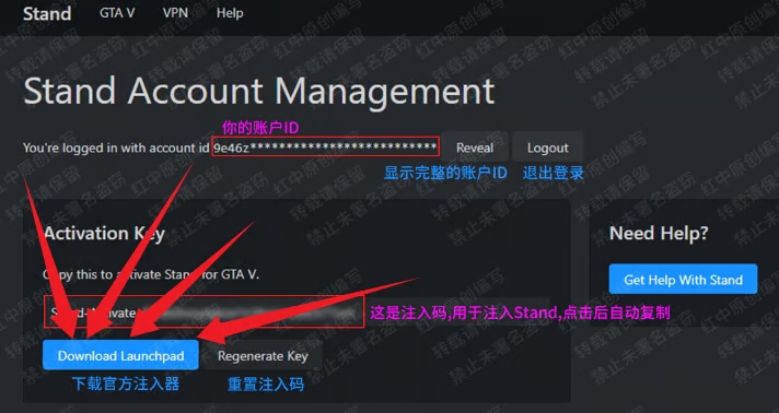注入激活码:用于注入Stand,无法用于登陆官网(更换游戏账号注入建议去官网重新生成激活码注入,详情可查看Stand解绑教程)