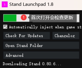 3.下载后并将其放在你的游戏目录中,然后你开始运行官方注入器后再进入游戏时会自动更新并注入Stand!