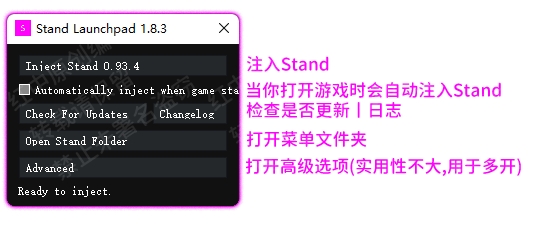 简单说明就是,保存你的注入码,每次注入只需要正常按照教程注入即可,不需登录Stand官网来刷新注入码