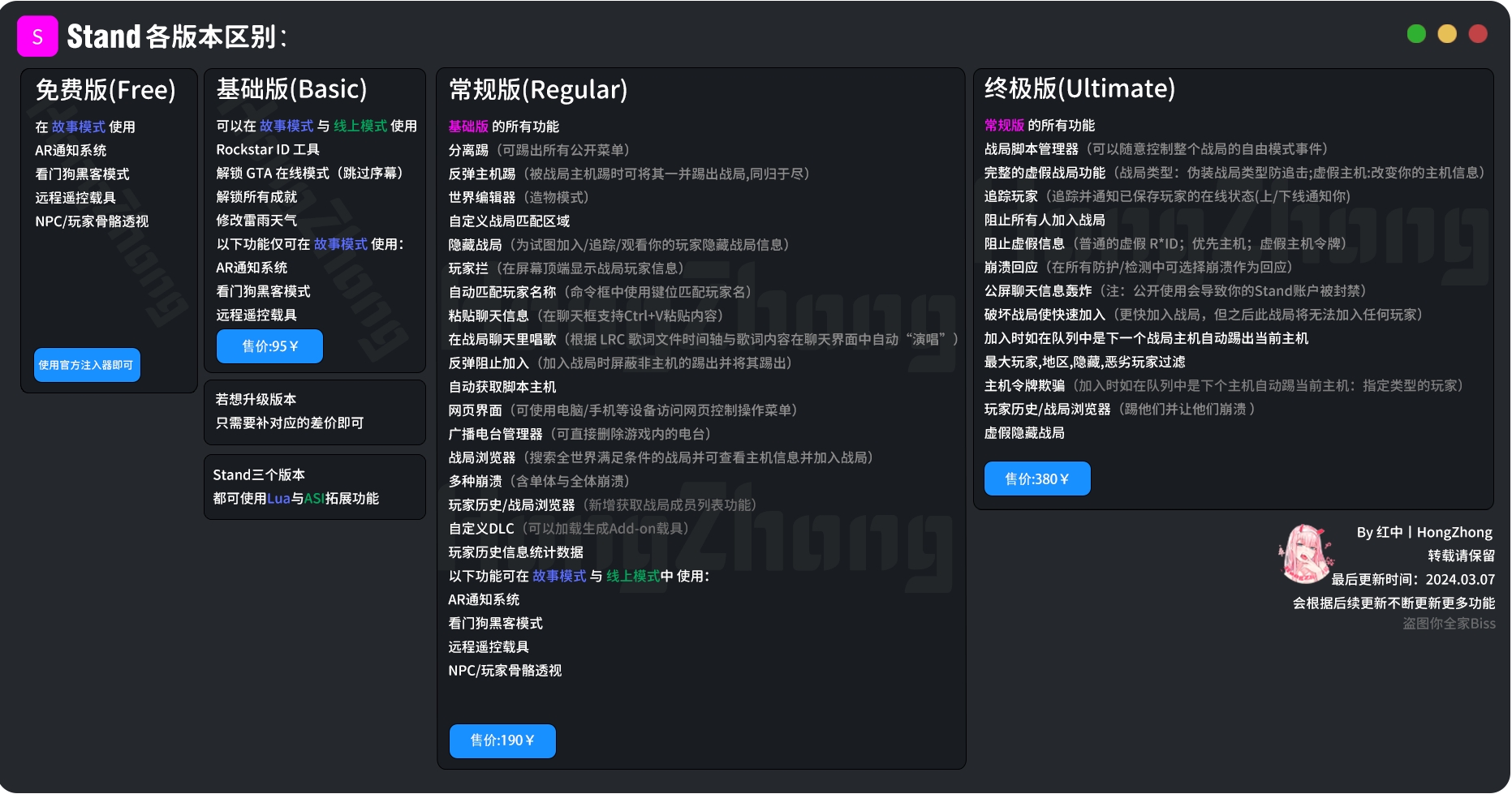 如果你是网吧的用户,在你不更换R*账号的前提下,正常注入Stand即可,不要每次换电脑/网吧就登录Stand官网来刷新你的注入码,因为这样会检测到你有不同的设备登录你的账户ID,有共享嫌疑,会Ban!**