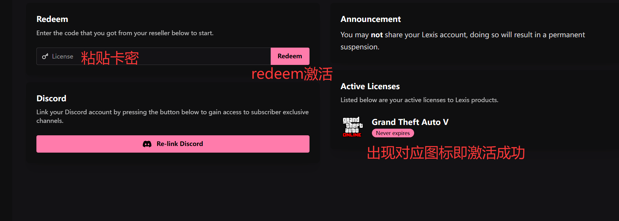 ·后续网站也不会帮备份你的激活码信息,请你自行保存!